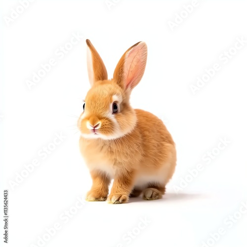 © padungsak, Obraz premium Cute brown rabbit sitting on a white background, showcasing its adorable features and fluffy fur.