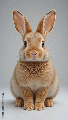 © QuantumMuse, Fototapeta premium Cute brown rabbit with large ears sitting calmly on a neutral background, showcasing its adorable expression and fluffy fur