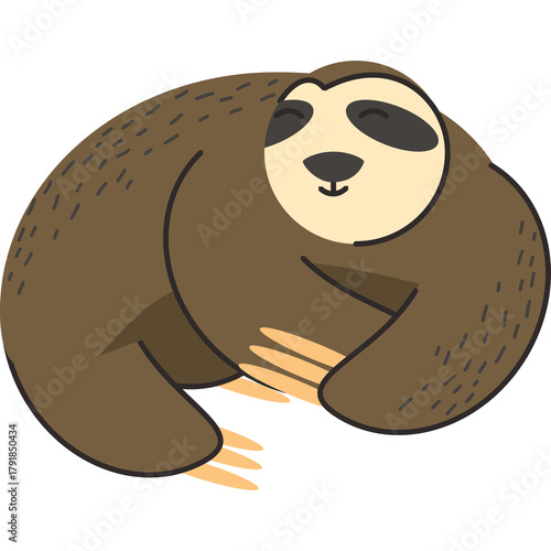 Naklejka premium Cute Brown Sloth Sleeping Peacefully with Eyes Closed and Claws Tucked In on...
