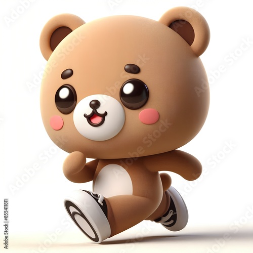 © Kwazai, Naklejka premium Cute Brown Teddy Bear Mascot Running on White Background