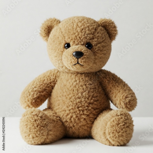 © Shavy, Obraz premium cute brown teddy bear plush toy sitting on a white background looking at the camera