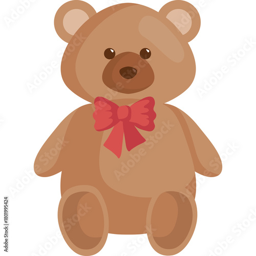 Obraz premium Cute brown teddy bear with red bow tie illustration isolated on transparent...