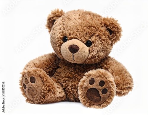 © Aqsa, Obraz premium Cute Brown Teddy Bear with Stitched Details isolated on white background