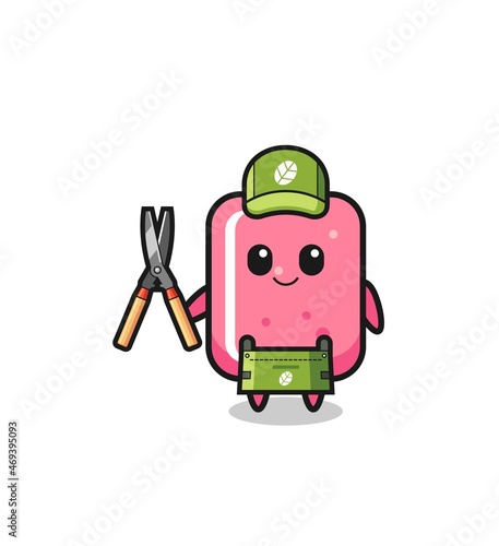 © heriyusuf, Fototapeta premium cute bubble gum as gardener mascot