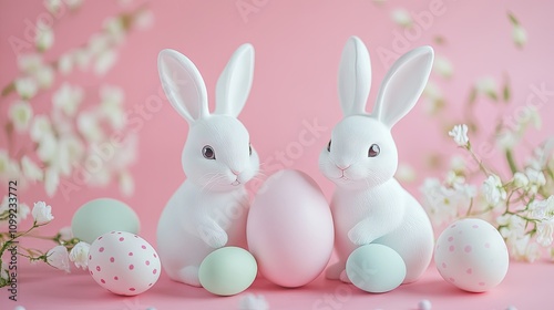 Obraz premium Cute bunnies and easter eggs on isolated background