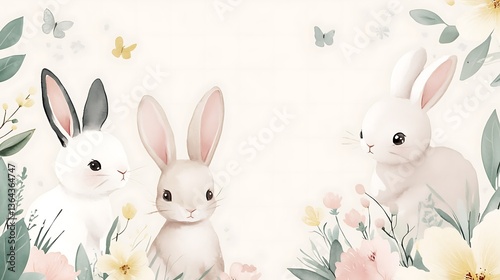 © Bagus Skak, Fototapeta premium Cute bunnies in spring garden.