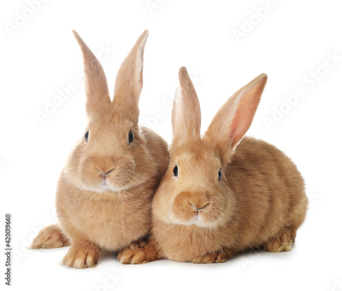 © New Africa, Obraz premium Cute bunnies isolated on white. Easter symbol