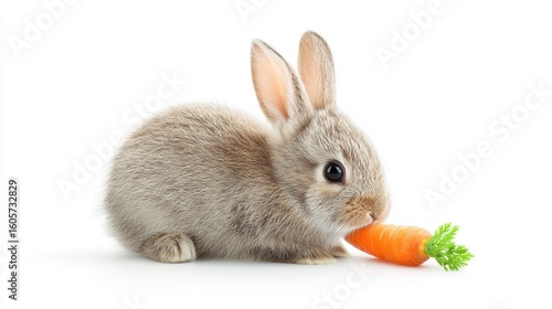 © Phichaphat, Fototapeta premium Cute Bunny Eating Carrot - Rabbit Animal Pet Food