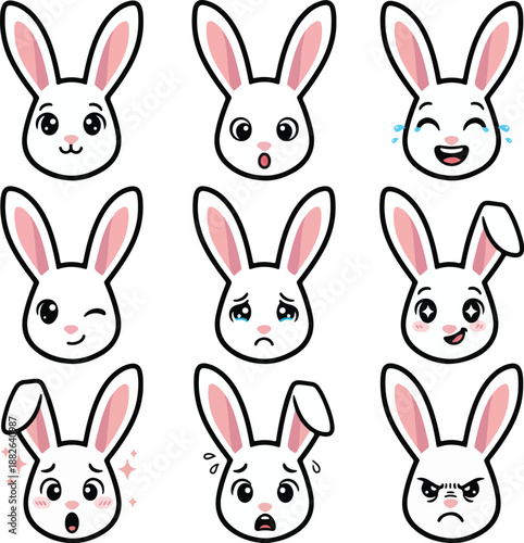 Obraz premium Cute Bunny Emoji Faces Set or Bunny face expressions collection for Happy...