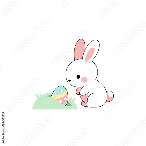Obraz premium Cute Bunny Finding Easter Egg Minimal Illustration