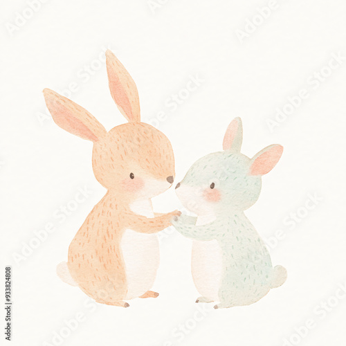 © warunthorn, Obraz premium Cute Bunny Friends.