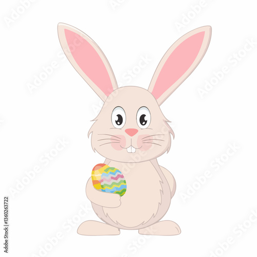 Obraz premium Cute Bunny Holding Decorated Egg. vector image