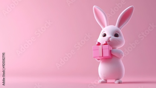 © BerkahStock, Obraz premium Cute Bunny Holding Gift