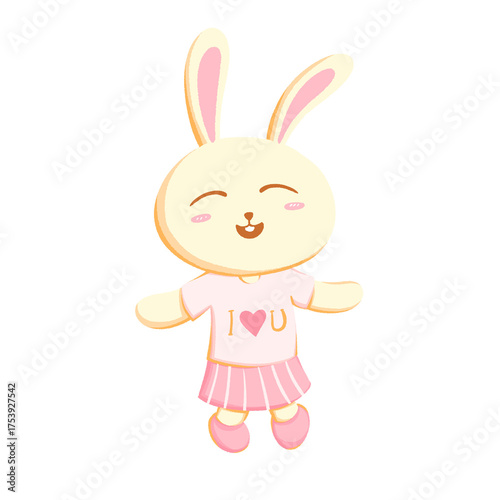 © Ahmad Aufie, Obraz premium Cute bunny in I Love You shirt