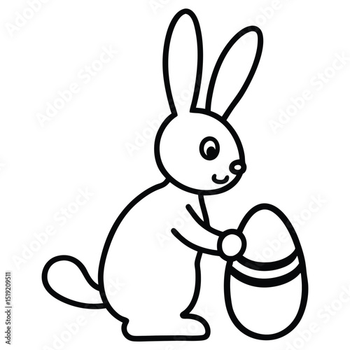 © mdanamulislamopu, Obraz premium Cute Bunny Painting Easter Egg on White Background