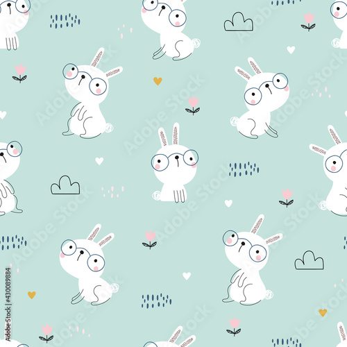© rosypatterns, Fototapeta premium Cute bunny pattern in vector