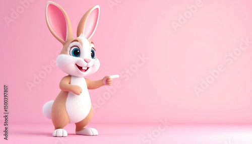 © Pc, Obraz premium Cute Bunny Pointing Pink Background.