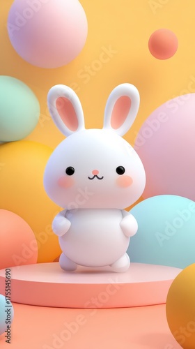 © NikahGeh, Obraz premium Cute Bunny Rabbit on a Pink Pedestal with Colorful Background.