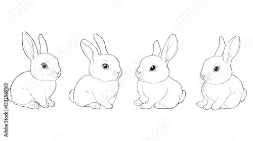 © Sumera, Fototapeta premium Cute bunny rabbit outline sketch vector illustration