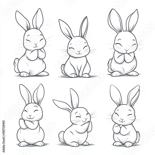 Obraz premium Cute Bunny Rabbit Outline Sketch Vector Illustration with Minimal Line Art Doodle in Different Poses