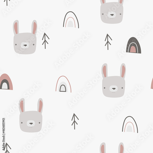 © Елизавета Хрусталева, Obraz premium Cute bunny rabbit seamless pattern vector background.