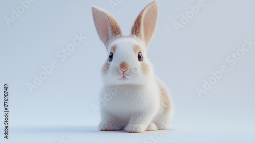 Obraz premium Cute bunny rabbit sitting, studio shot, white background, Easter
