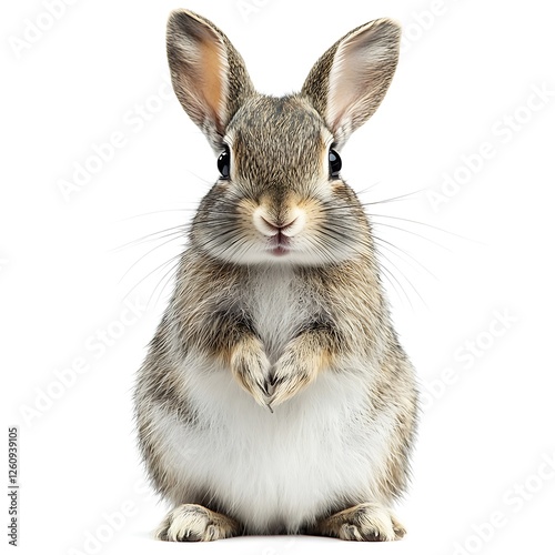 © ardanz, Obraz premium Cute bunny rabbit sitting, white background, pet, springtime