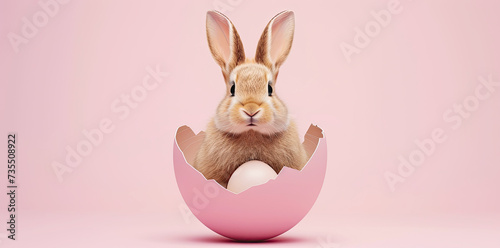Obraz premium Cute bunny sitting inside an eggshell.