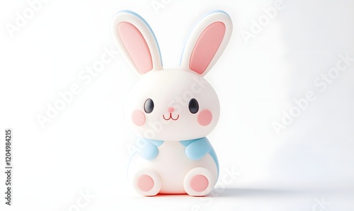 © Maryanto, Fototapeta premium Cute bunny toy sits on white background, studio shot, Easter