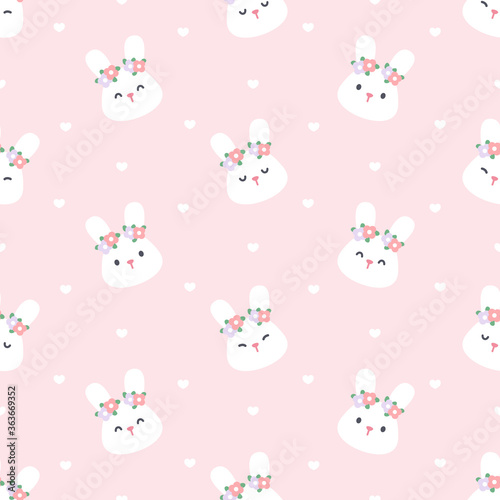 Obraz premium Cute bunny with flower crown seamless pattern background