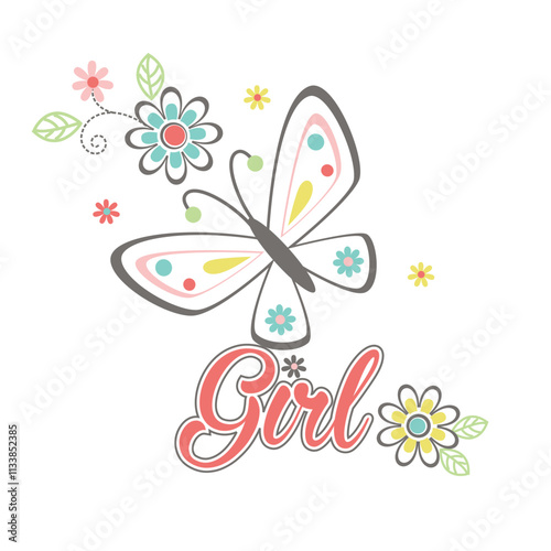 Fototapeta premium Cute butterfly with vibrant flowers vector