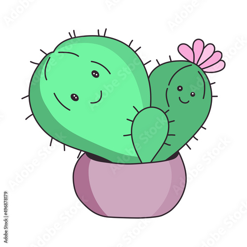 © Vala Ivashchenko, Naklejka premium Cute cactus characters in a flower pot. Vector illustration.