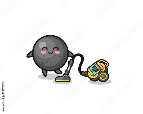 Obraz premium cute cannon ball holding vacuum cleaner illustration
