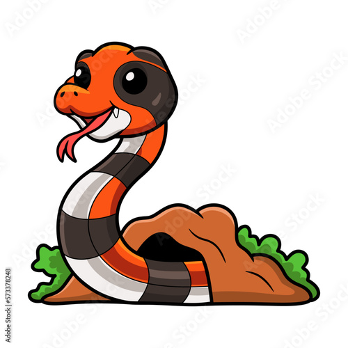 Fototapeta premium Cute cape coral snake cartoon out from hole