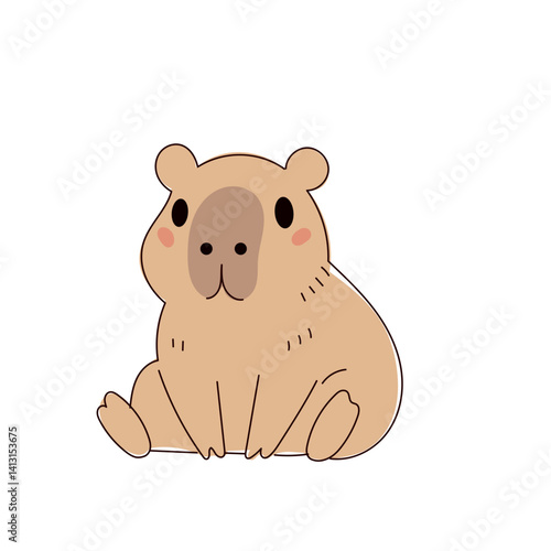 © vanillamilk, Naklejka premium Cute Capybara Portrait Icon. Funny Doodle Character Drawn Portrait. Positive Wild Capybara Friendly Animal Mascot. Childish cartoon Adorable Happy Pet Illustration.