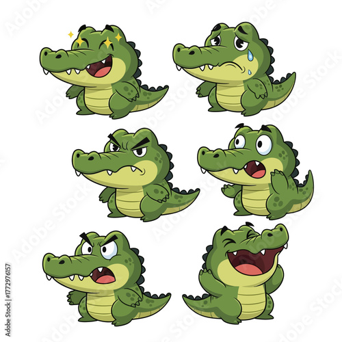 © magnetglobal, Fototapeta premium Cute Cartoon Alligator Emoticon Set With Different Expressions.