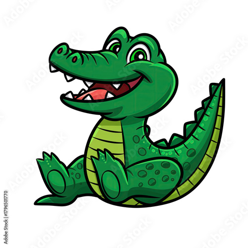 © muhammad, Fototapeta premium Cute cartoon alligator sitting with happy expression and open mouth on black background digital art