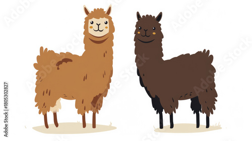 © Eireen, Naklejka premium Cute cartoon alpacas with fluffy wool isolated on light background