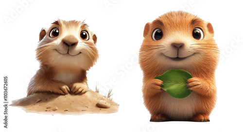 Fototapeta premium Cute Cartoon Animal Characters on Transparent Background