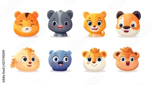 © 11faqihtanjung, Fototapeta premium Cute cartoon animal faces, various expressions, isolated on white background.