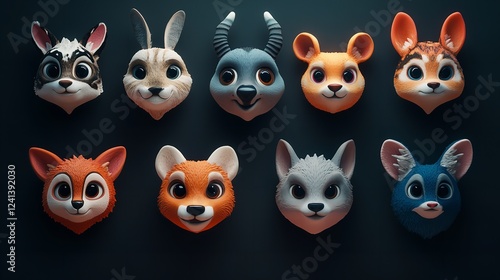 Fototapeta premium Cute Cartoon Animal Heads, Perfect for Children's Media