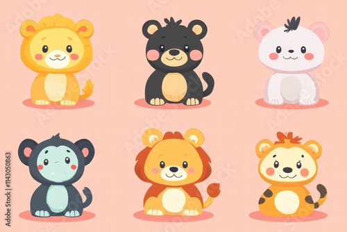 Fototapeta premium Cute cartoon animals celebrating Chinese New Year with joyful expressions and...