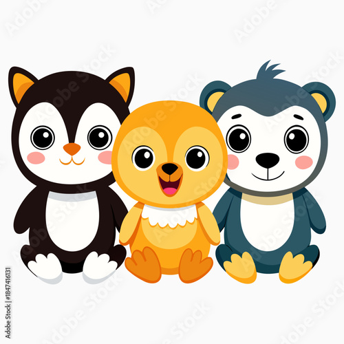 © Kawsar, Fototapeta premium “Cute Cartoon Animals Set Adorable Baby Forest Animals Vector Illustration”