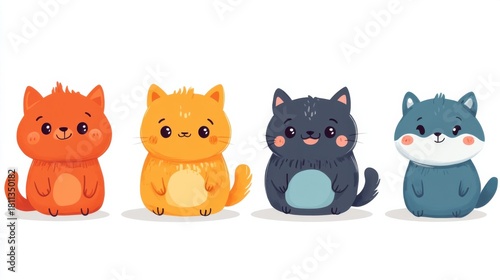 © Pat J., Naklejka premium cute cartoon animals set, flat vector illustration, smiling characters, colorful and lively style on white background
