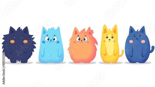 © Pat J., Fototapeta premium cute cartoon animals set, flat vector illustration, smiling characters, colorful and lively style on white background