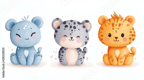 © GenerativeAIpicture, Naklejka premium Cute Cartoon Animals with Adorable Expressions in Bright Colors