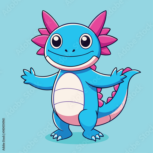 © Rony, Fototapeta premium Cute Cartoon Axolotl Character Standing With Open Arms On Light Blue Background