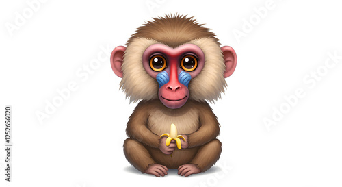 Fototapeta premium Cute Cartoon Baboon Holding a Banana on White Background Graphic