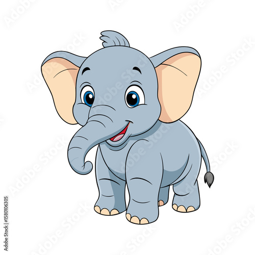 © Roman, Fototapeta premium Cute cartoon baby elephant. Adorable smiling animal character illustration for kids. Vector graphic isolated on white background.