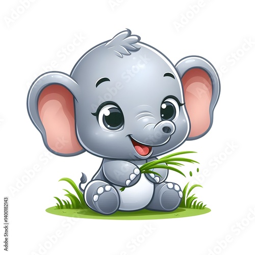 © AnimalLikeUs, Fototapeta premium Cute Cartoon Baby Elephant Eating - Vector Illustration